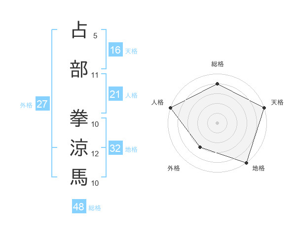 占部 拳涼馬さんを姓名の画数から五運を鑑定
