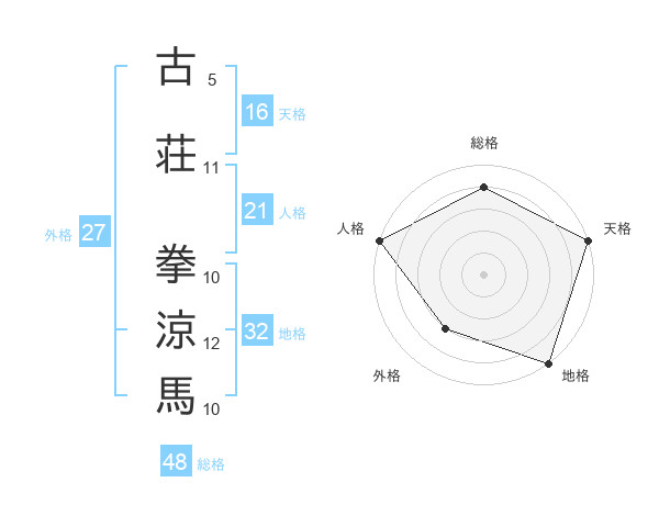 古荘 拳涼馬さんを姓名の画数から五運を鑑定