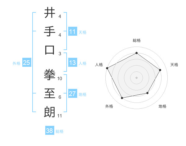 井手口 拳至朗さんの総格は38画の4点!