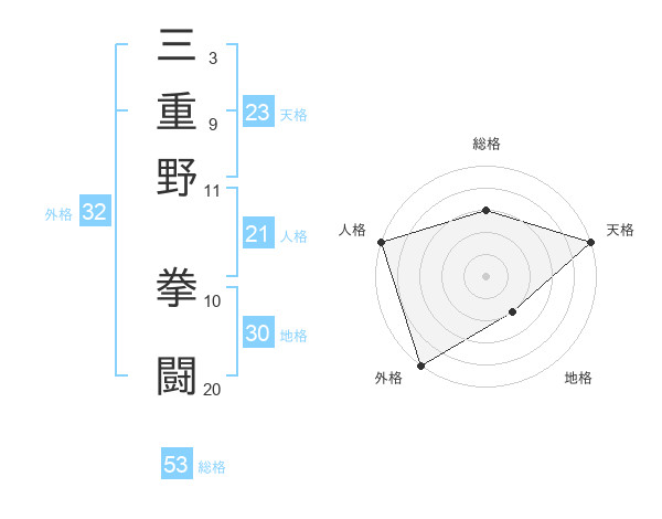 三重野 拳闘さんを姓名の画数から五運を鑑定