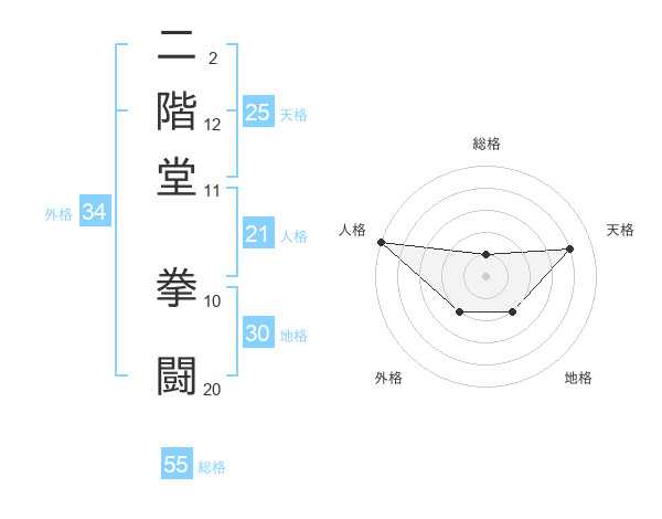 二階堂 拳闘さんを姓名の画数から五運を鑑定