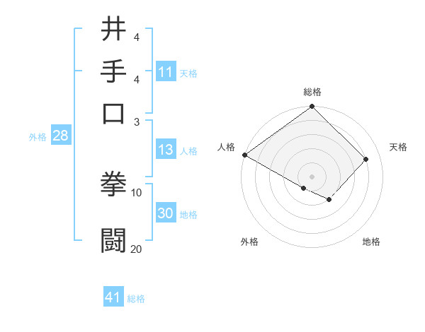 井手口 拳闘さんを姓名の画数から五運を鑑定