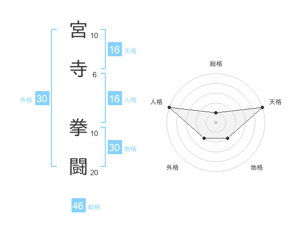 宮寺 拳闘さんの天格は16画の5点!