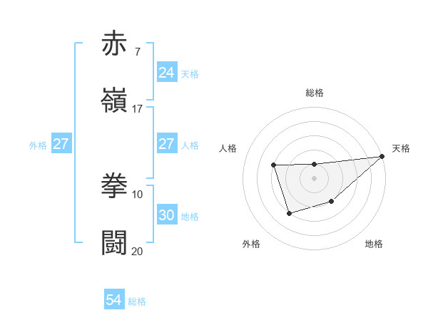 赤嶺 拳闘さんを姓名の画数から五運を鑑定