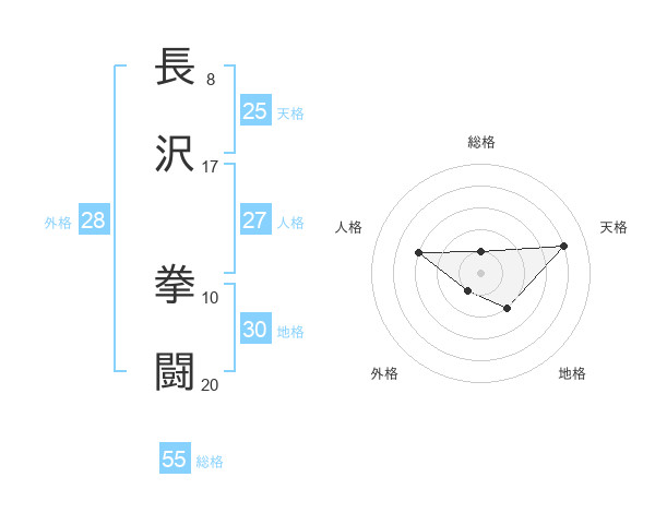 長沢 拳闘さんを姓名の画数から五運を鑑定