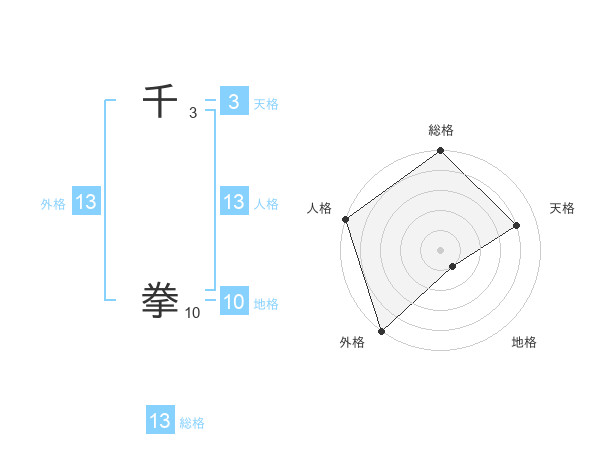 千 拳さんの外格は13画の5点!
