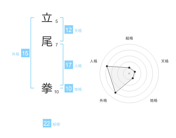 立尾 拳さんの総格は22画の1点!