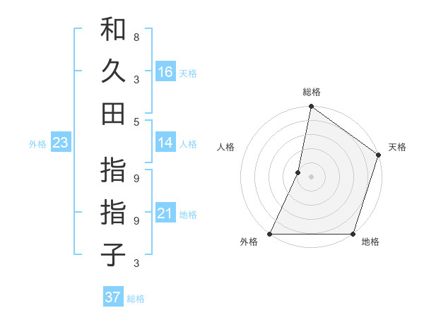 和久田 指指子さんの天格は16画の5点!
