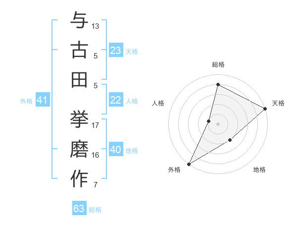 与古田 挙磨作さんを姓名の画数から五運を鑑定