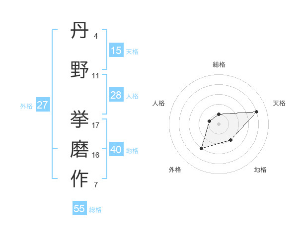 丹野 挙磨作さんを姓名の画数から五運を鑑定