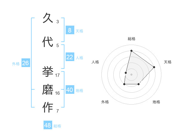 久代 挙磨作さんを姓名の画数から五運を鑑定