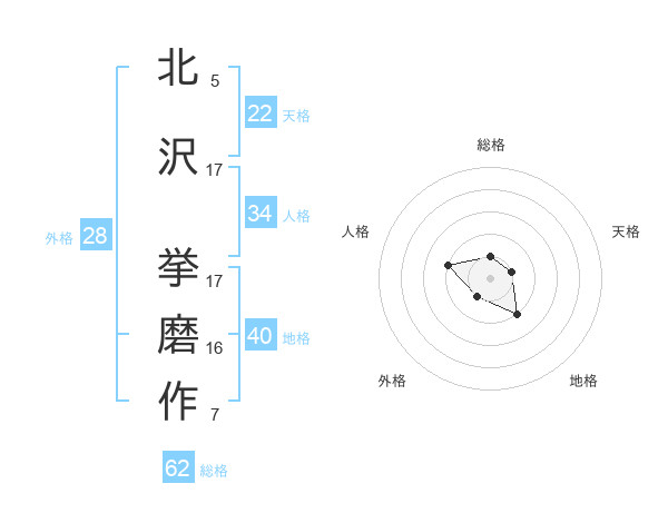北沢 挙磨作さんを姓名の画数から五運を鑑定