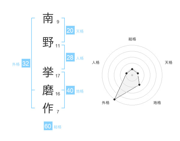 南野 挙磨作さんを姓名の画数から五運を鑑定