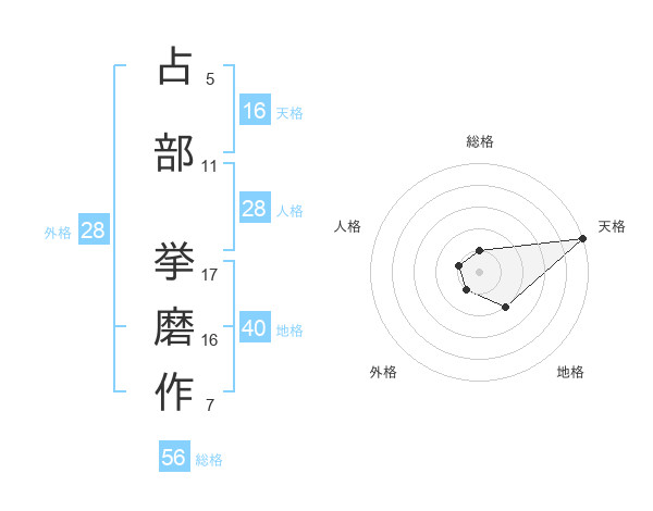 占部 挙磨作さんを姓名の画数から五運を鑑定