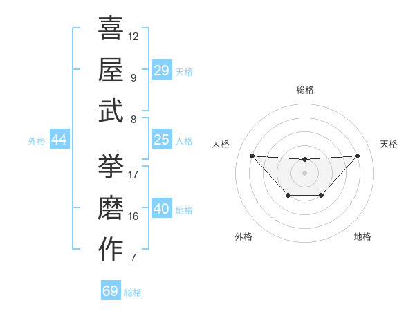 喜屋武 挙磨作さんを姓名の画数から五運を鑑定