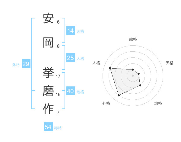 安岡 挙磨作さんの総格は54画の1点!