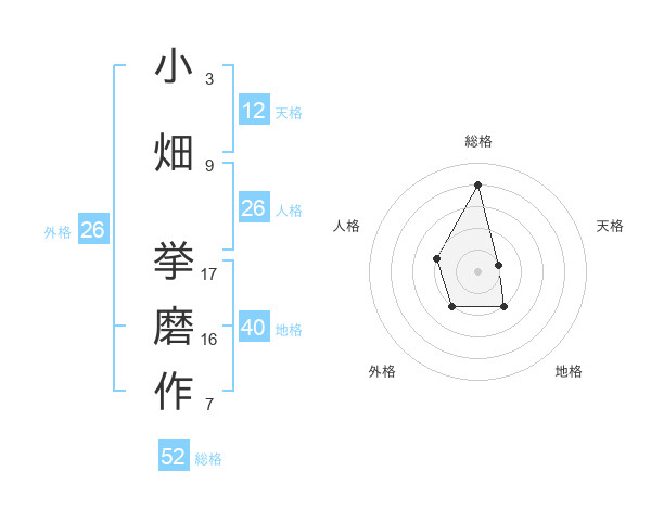 小畑 挙磨作さんを姓名の画数から五運を鑑定