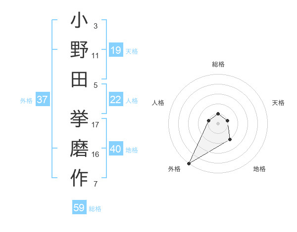 小野田 挙磨作さんを姓名の画数から五運を鑑定