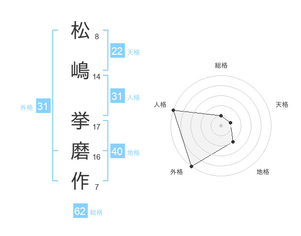 松嶋 挙磨作さんの外格は31画の5点!