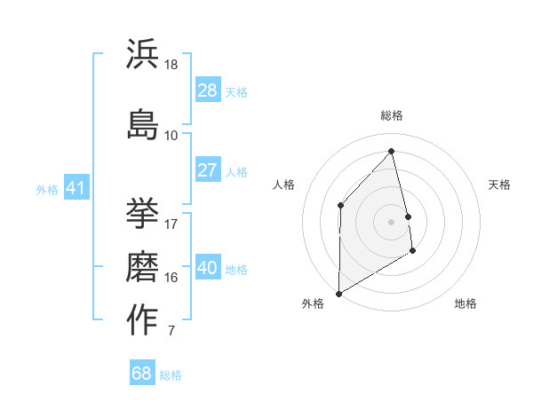 浜島 挙磨作さんの総格は68画の4点