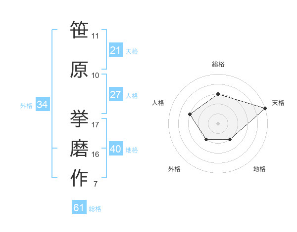 笹原 挙磨作さんの天格は21画の5点
