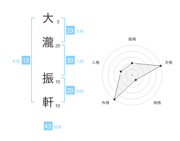 大瀧 振軒さんの天格は23画の5点!