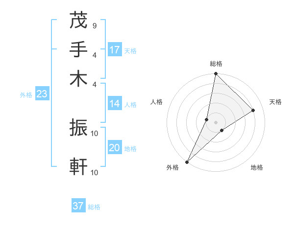 茂手木 振軒さんの総格は37画の5点!