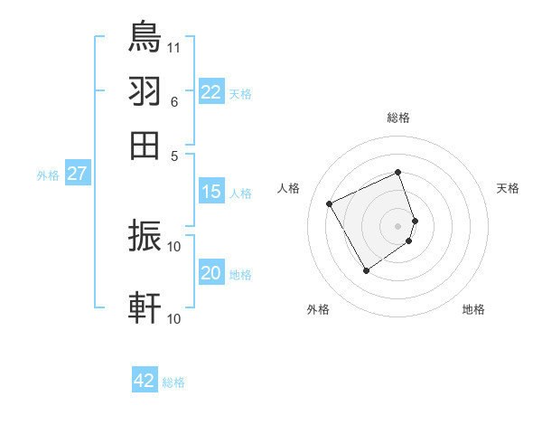 鳥羽田 振軒さんを姓名の画数から五運を鑑定