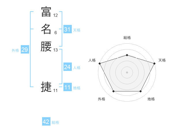 富名腰 捷さんを姓名の画数から五運を鑑定