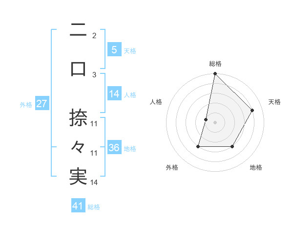 二口 捺々実さんの外格は27画の3点!