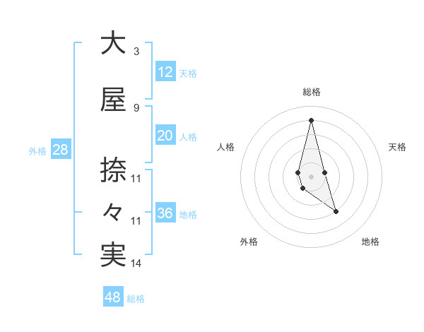大屋 捺々実さんを姓名の画数から五運を鑑定