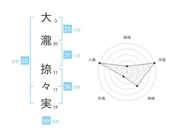 大瀧 捺々実さんを姓名の画数から五運を鑑定