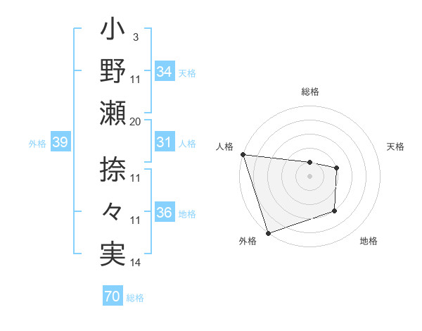 小野瀬 捺々実さんを姓名の画数から五運を鑑定