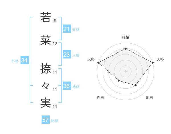 若菜 捺々実さんを姓名の画数から五運を鑑定