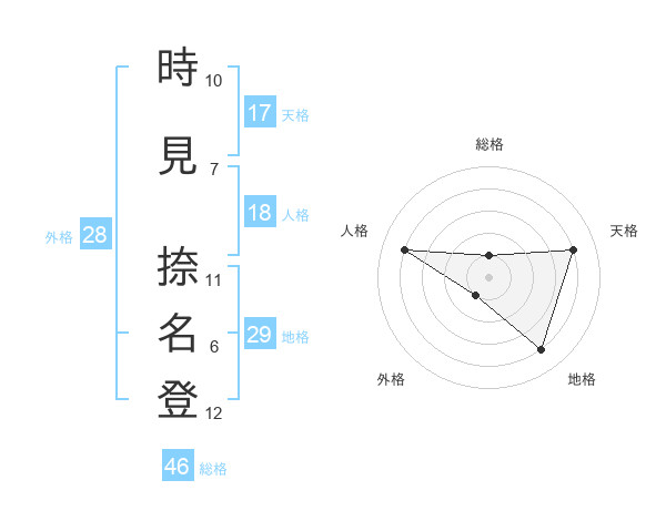 時見 捺名登さんの総格は46画の1点!