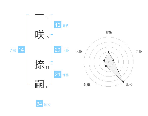 一咲 捺嗣さんの総格は34画の2点!