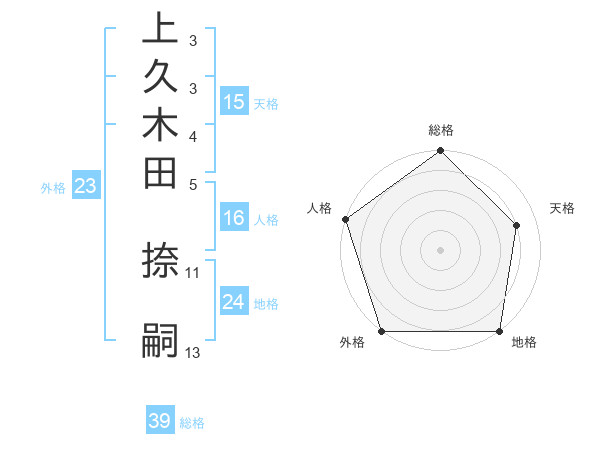 上久木田 捺嗣さんの総格は39画の5点!
