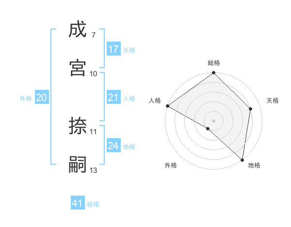 成宮 捺嗣さんの総格は41画の5点!