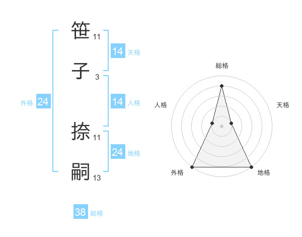 笹子 捺嗣さんの総格は38画の4点!