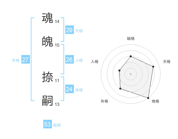 魂魄 捺嗣さんの総格は53画の3点!