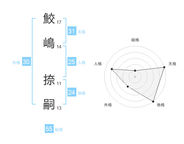 鮫嶋 捺嗣さんの総格は55画の1点!