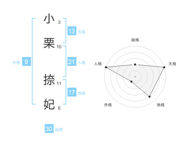 小栗 捺妃さんの天格は13画の5点!