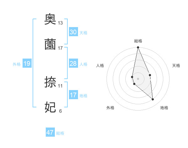 奥薗 捺妃さんの外格は19画の1点!