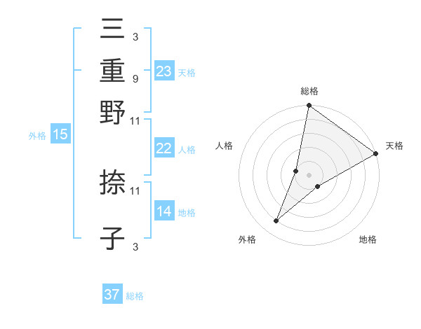 三重野 捺子さんを姓名の画数から五運を鑑定