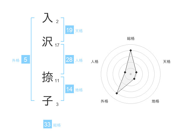 入沢 捺子さんの総格は33画の4点!