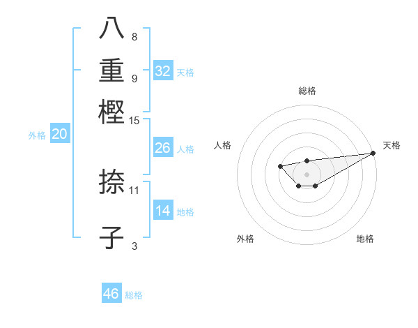 八重樫 捺子さんを姓名の画数から五運を鑑定