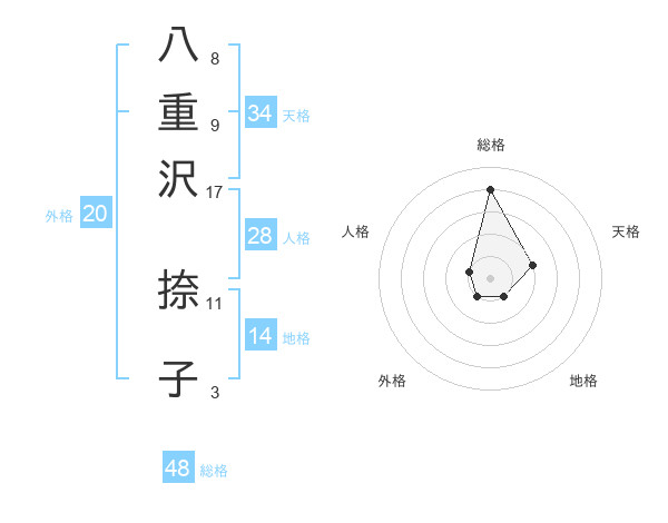 八重沢 捺子さんの総格は48画の4点!