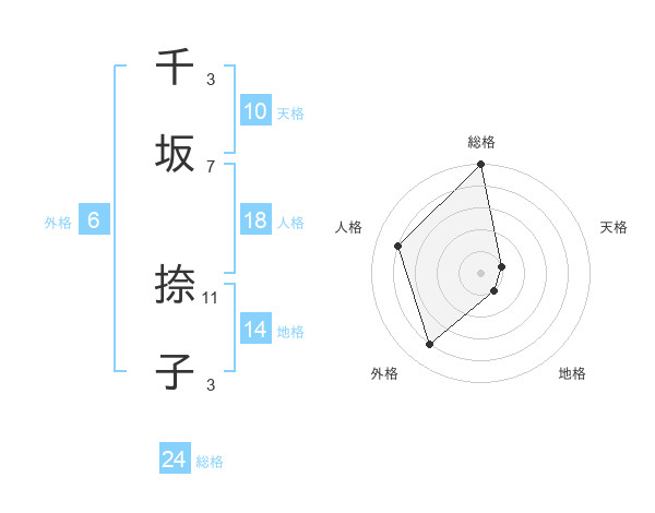 千坂 捺子さんの総格は24画の5点!