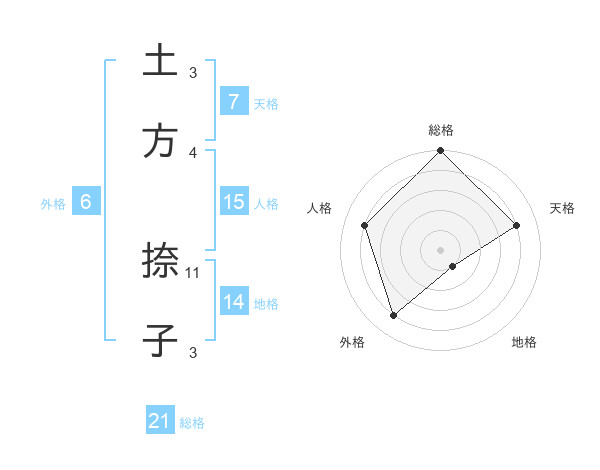 土方 捺子さんの総格は21画の5点!