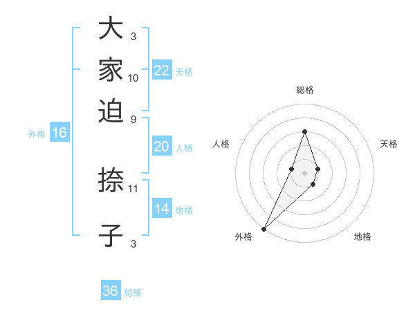 大家迫 捺子さんを姓名の画数から五運を鑑定